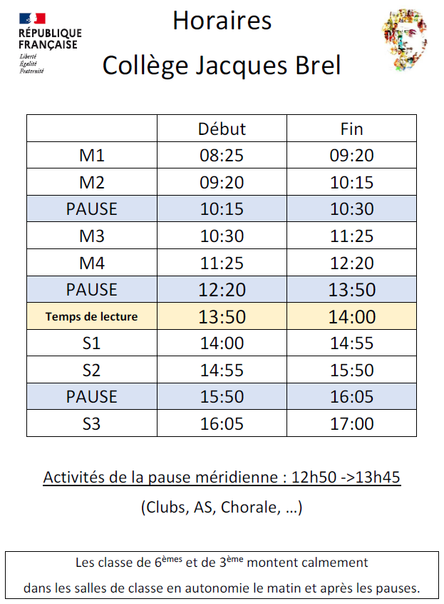 Horaires du collège