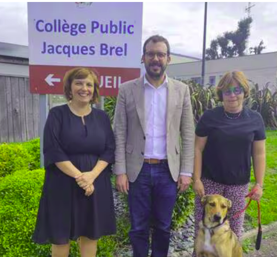 Le chien Texas a fait sa rentrée au collège Jacques Brel. La présence d’un animal dans un établissement scolaire n’est pas commune …. Un des objectifs de la médiation animale est de rendre le climat plus serein dans les salles de cours. Et çà marche !