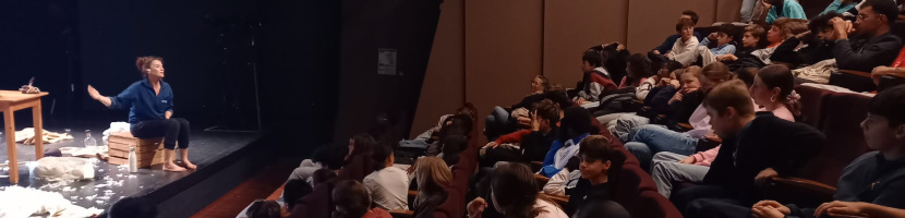 La comédienne, Christelle Kerdavid, était venue en personne présenter son spectacle lors d’ateliers d’une heure par classe et a répondu aux questions des élèves lors d’un bord-plateau à l’issue de sa performance.